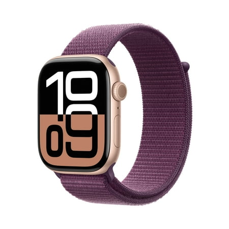 Apple Watch Series 10 GPS 46mm Rose Gold Aluminum Case with Plum Sport Loop